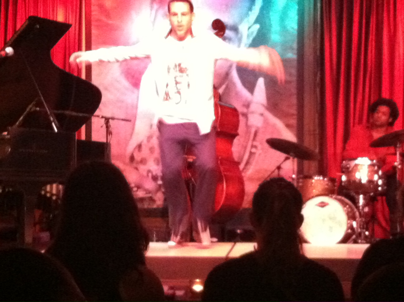 tonight it’s a true mix of up & coming with masterful artists. walking into the entrance you can already feel the buzz and anticipation for what’s to come. and ambiance! the space: resonant and low-lit with images of famous musician performers from the past. the present: a trio of musicians offering distinctive jazz standards, medleys & mashups; complementing the explosive tap percussive rhythms. and what better way to create ambiance for the tap to come than to have live music! especially with the stellar jazz trio led by Greg Spero on piano, Junius Paul on bass and Makaya Mccraven on drums. inviting and compelling.